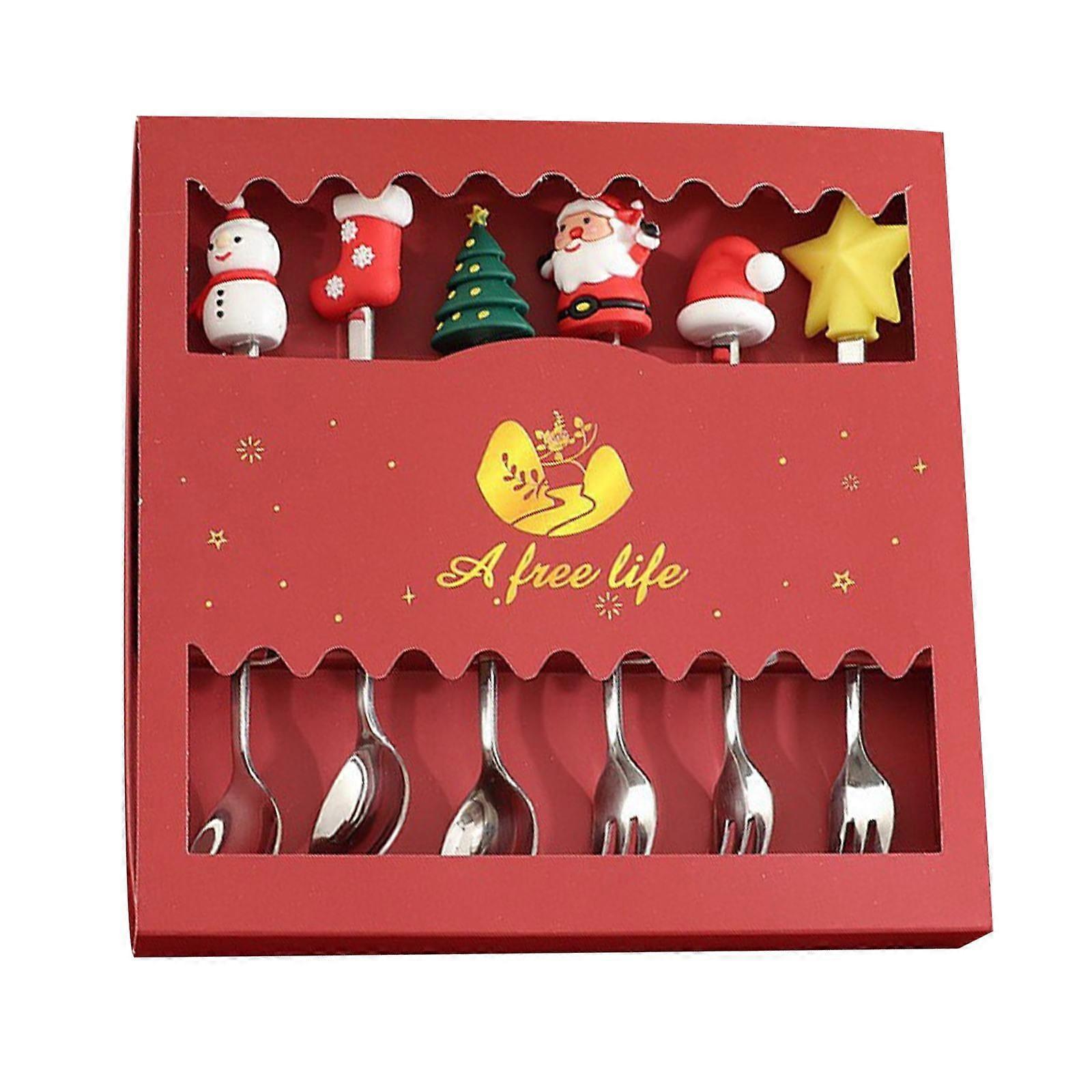 Poaug Silverware Set Compatible with Christmas Doll, Stainless Coffee Stir Spoon Fork Gift Set, New Year's Fruit Spoon Tableware Clearance