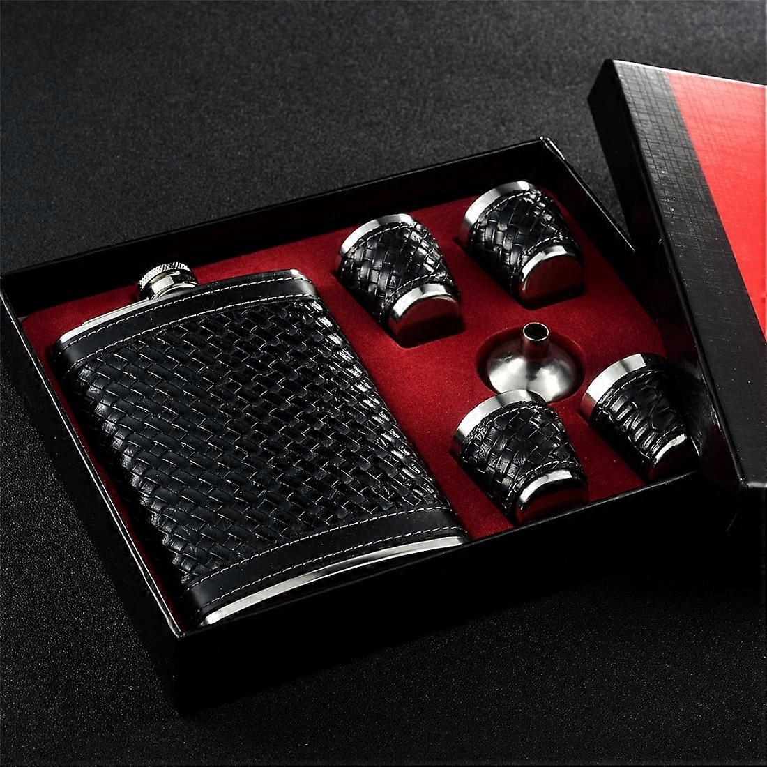 6Pcs/set 9oz Black Leather Wrap Stainless Steel Hip Flask Set Flask for Liquor with 4 Cups and 1 Funnel Best Man Gift