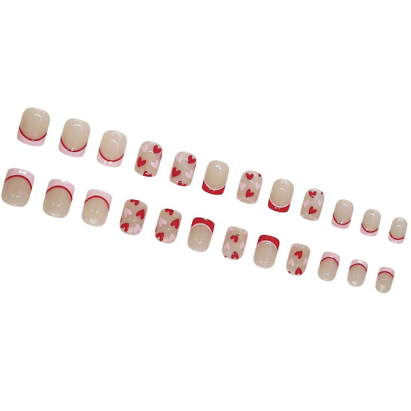 24pcs French Tip Artificial Nail with Heart Pattern Short Square Acrylic Nail Press on Nail Parties Nail Accessories Multicolor