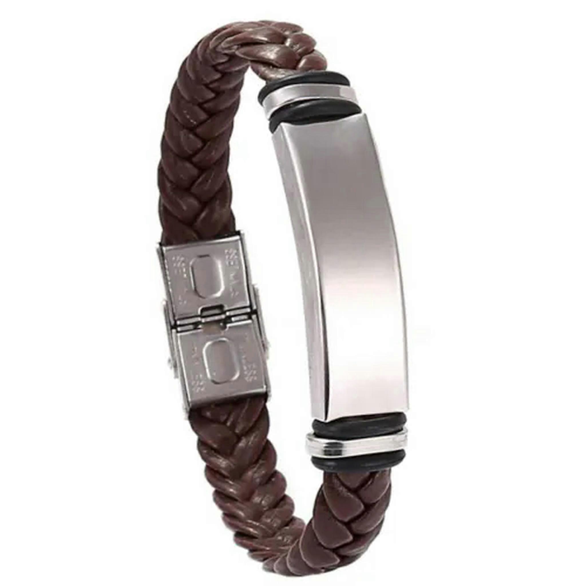 RSAMD Men Women Leather Titanium Steel Magnetic Braided Clasp Bracelet Bangle Jewelry-Brown-1