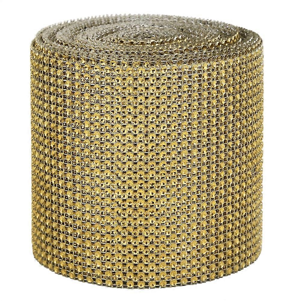Delaman Rhinestone Ribbon, 1 Roll 9m Practical Plastic Rhinestone Mesh Stable Durable Wedding Decoration for Wedding Decoration, Stage Props(gold)