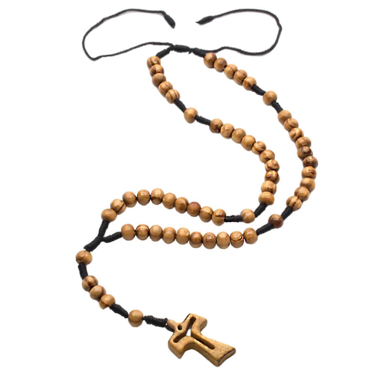 Classical Wood Beads Rosary Necklace with Hollowed Crosses Pendant for Christian Believers and Fashion Enthusiasts Multicolor