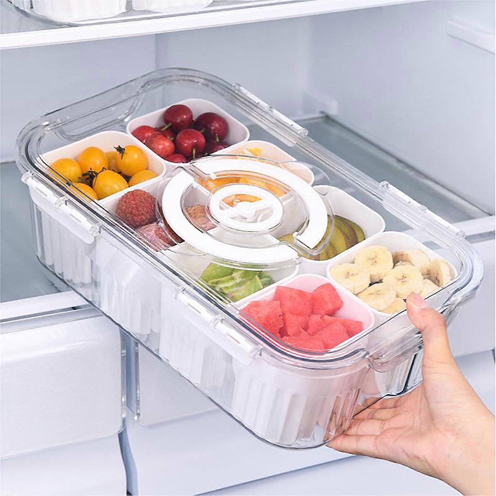 Donemore 8-Compartment Veggie Tray, Snackle Box - Transparent Reusable Food Storage Container for Fridge, Organizes Meat, Fruits, Snacks, Nuts
