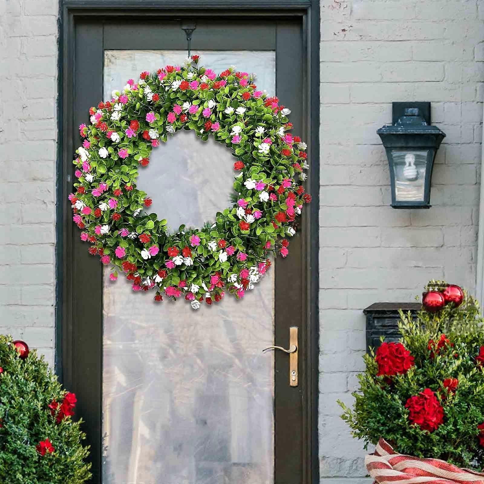 YANHAIGONG Colorful Wreaths for Front Door, Spring Summer Floral Wreath with Wildflowers, Indoor Outdoor Farmhouse Home Decoration