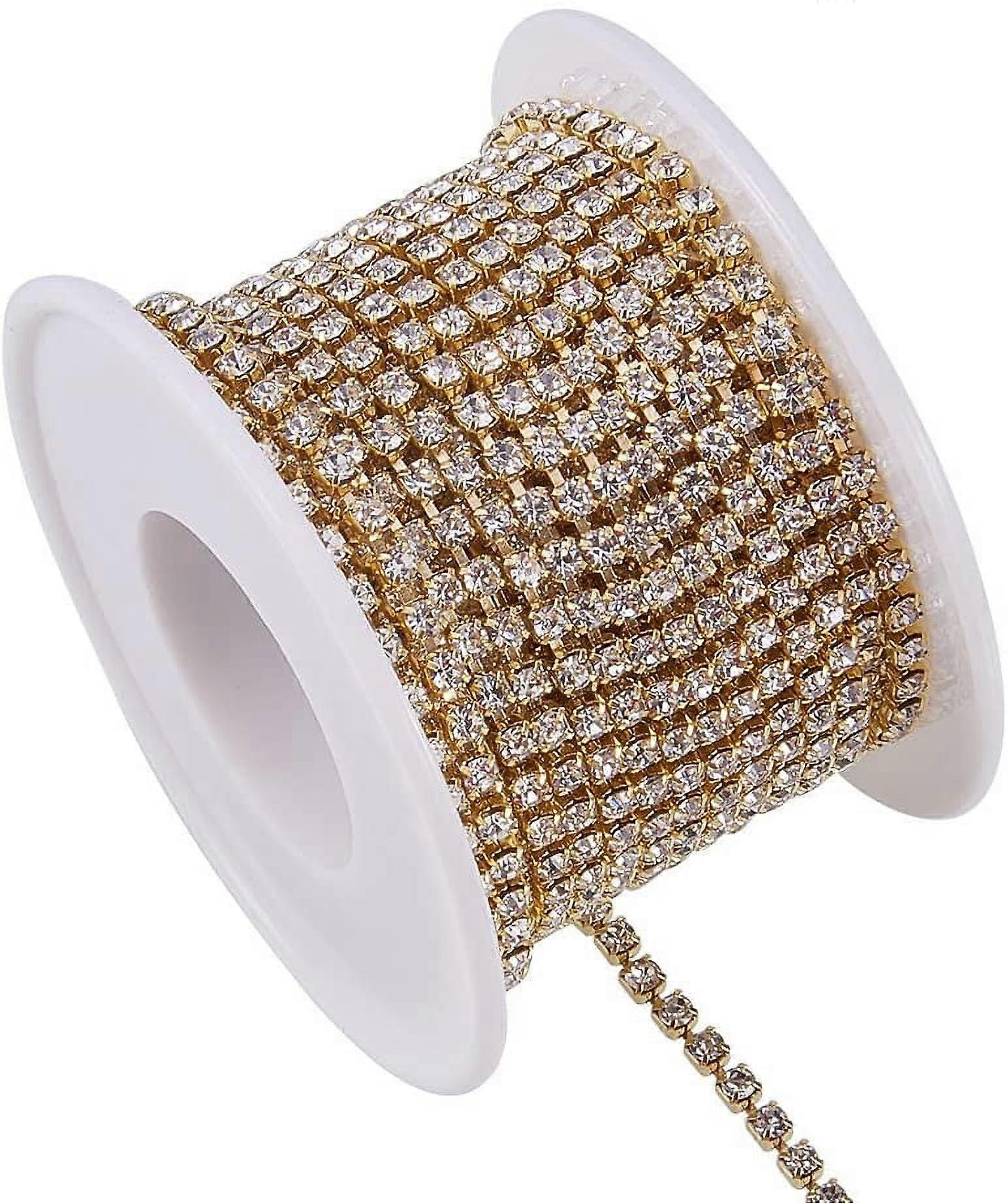 10 Yard 2.6mm Crystal Rhinestone Close Chain Clear Trimming Claw Chain Sewing Craft 2740pcs Rhinestones - Crystal(Gold Bottom)