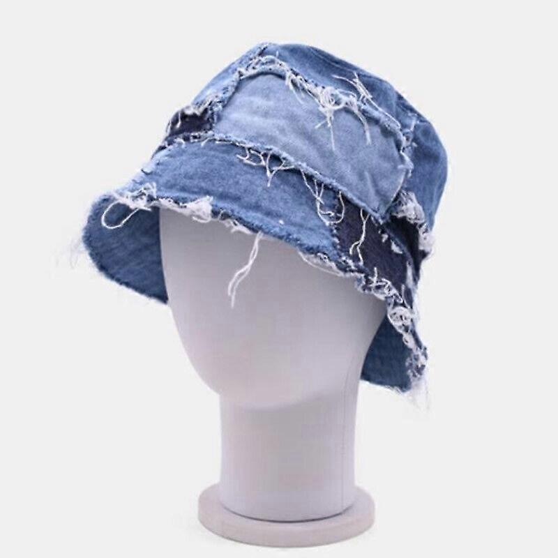 Unisex Women Men Denim Bucket Hats Casual Fisherman Cap Jean Patchwork Soft Hats
