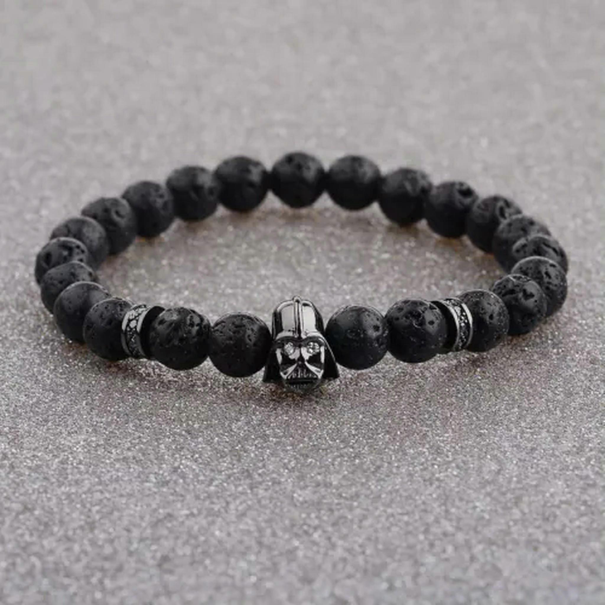 RSAMD Fashion Men's Bracelet 8mm Black Agate Stone Bracelets-Lava
