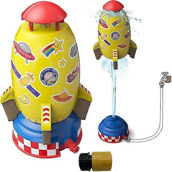 Splash Rocket Sprinkler Toy Newly independently developed water sprayer, the water column is concentrated and not easy to disperse, which can make the rocket rise and fall smoothly or hang in the air. The rocket will rise to different heights depending on the water pressure. The rocket nozzle acts as a water spout to splash water, and adults and children can play under the splash. Easy installation and use Rocket launcher Sprinkler toys for children are installed without tools. You only need to connect your regular garden hose to the water outlet and the rocket sprinkler head. You can control the water pressure by controlling the water outlet switch to make the rocket reach the desired height. Water will spray from the rocket nozzle. Note: Turn the switch gently when turning it on or off. Flying too high will affect the stability of the rocket. NOT RECOMMENDED to fly too high. Durable material The rocket launcher is made of environmentally friendly ABS material, safe and sturdy, durable and long-lasting, perfect for giving your children or pets a lot of fun in hot summer days. DIY rocket launcher Our rocket launcher has a very cute cartoon shape. The product comes with cartoon stickers, and you can freely paste cartoon patterns on the rocket according to the schematic picture on the packaging box. Better train children's learning ability, but also can develop children's thinking. Perfect summer toys for children's gifts Water splash rocket toys are your best choice to use as a gift. It is an essential toy for outdoor water activities in summer for outdoor activities on any hot day. Boys and girls will love to get this outdoor water toy as a birthday gift, Christmas gift or children's gifts.