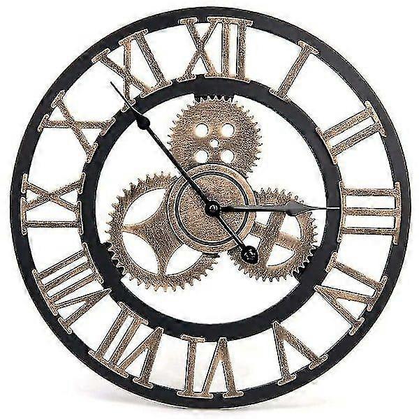 Vintage wall clock - European style retro wall clock, with handmade 3D decorations and Roman numerals, used in the living room