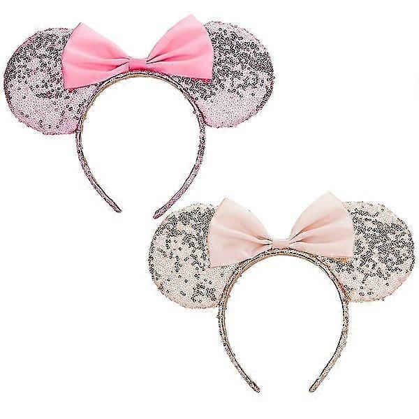 Sequin Mouse Ear Headband, Glitter Hairband for Disney Theme Parks, Parties (2 Pack)