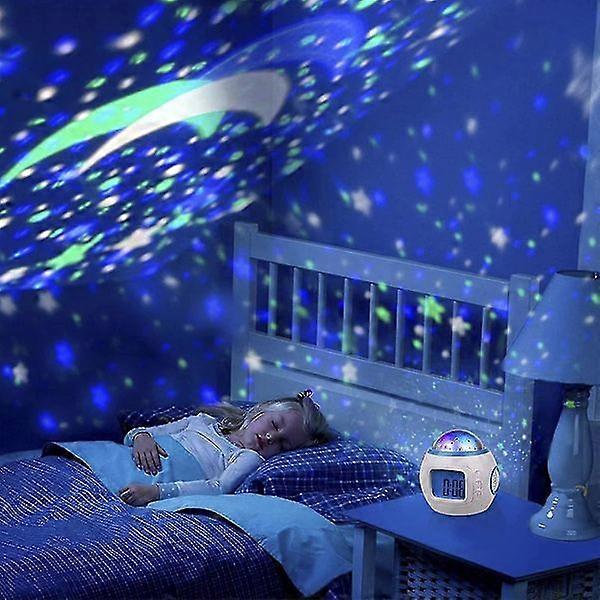 Children's clock, stars 7 colors night light, digital alarm clock temperature detection for toddlers, children boys and girls, students to wake up