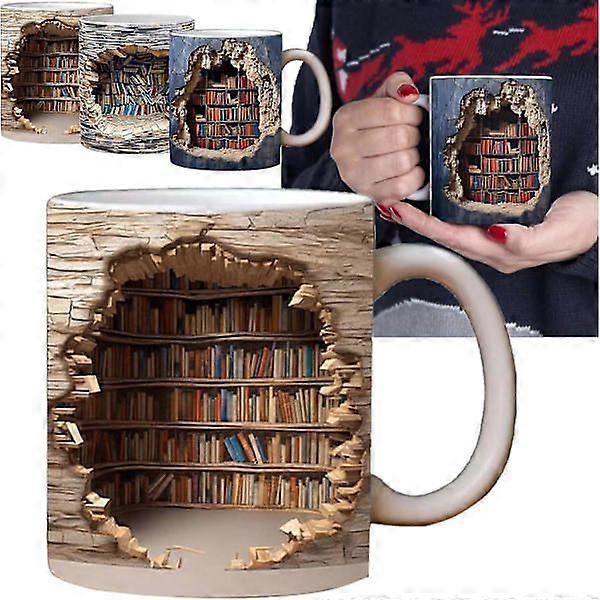 3D Bookshelf Mug, 3D Effect Book Mugs, Creative Space Design Multifunctional Ceramic Mug, Coffee Mug Gift for Book Lovers B