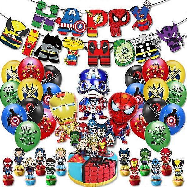 Spider-Man Iron Man Cartoon Superhero Theme Birthday Decoration Balloons Banner Cupcake Cake Topper Set Party Supplies