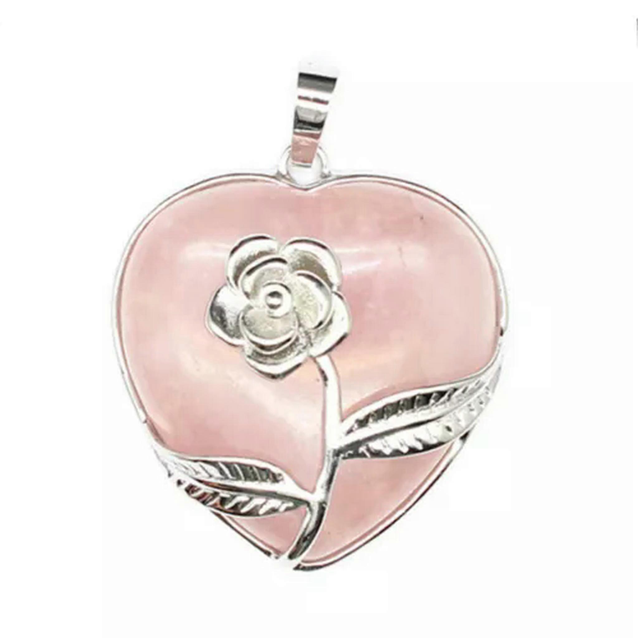 RSAMD Rose Flower Pendant Natural Crystal Stone Gemstone Heart Reiki Chakra Charm Bead-1PC (Random Pick)-Rose Quartz (#1)