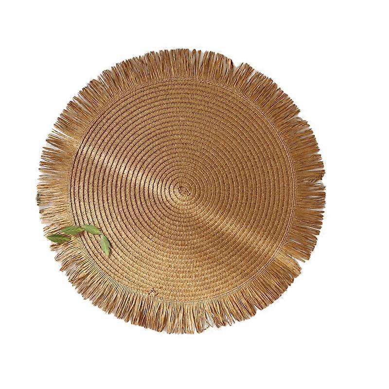 Round Braided Placemats Fringe Paper Table Mats Hand Woven Non-slip Insulation Place Mats Tea Cup Pad Dining Table Decorations