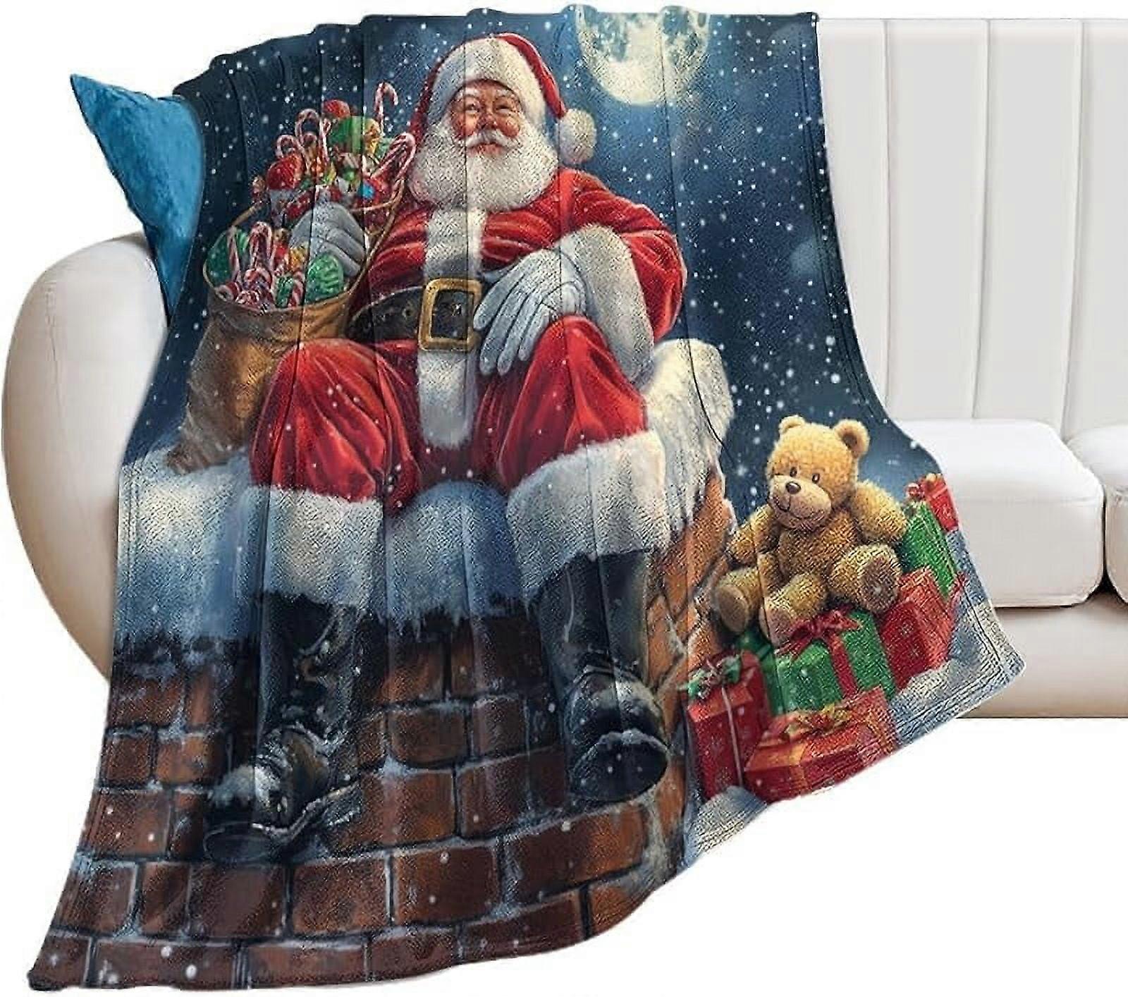 Santa Claus Train Throw Blanket - Lightweight Flannel, Vintage Pattern, All Season Use, Gifts for Women, Men, Kids