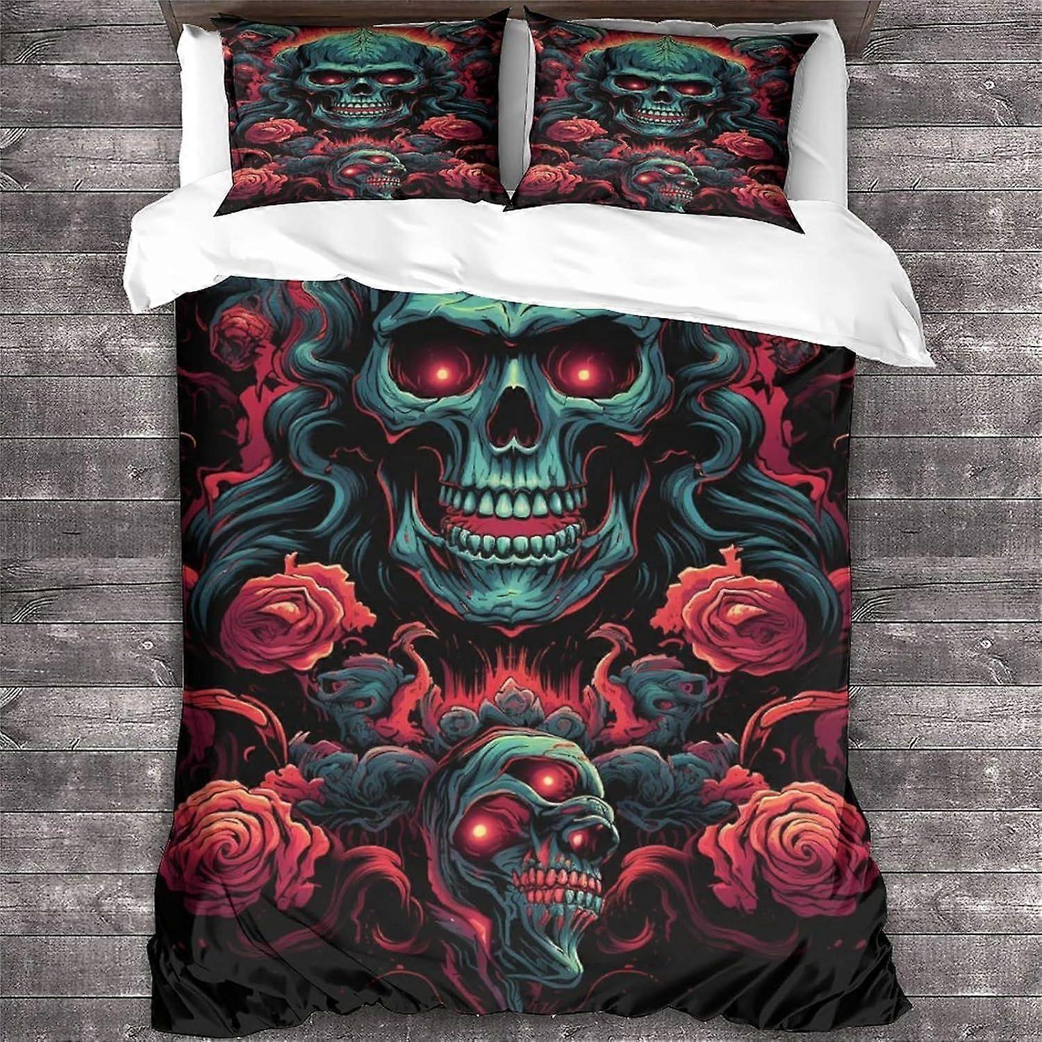Rock 'n' Roll Duvet Cover Heavy Metal Guitar Bedding Set 3D Skull Soft Comforter Quilt Cover Microfiber 3 Piece Bedding Set Room Decor Double