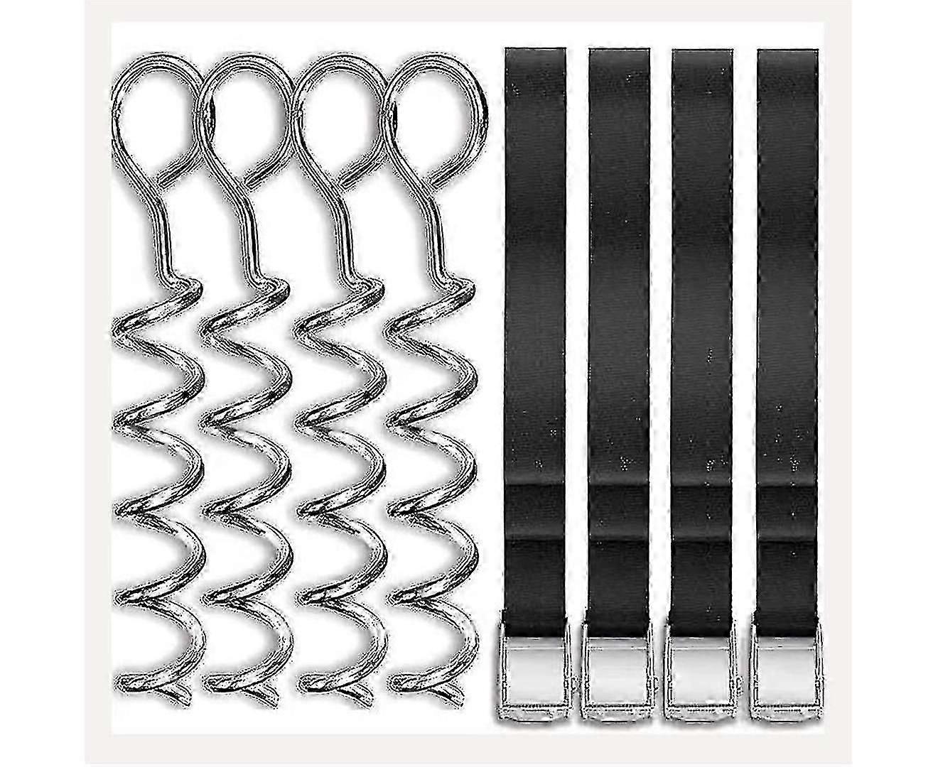 4 Sturdy Anchor Stake Sets for Trampoline Ground Anchor Kit - Stainless Galvanized Steel Stakes for Garden Camp Trampoline Swing with 4 Solid Straps 2.3m