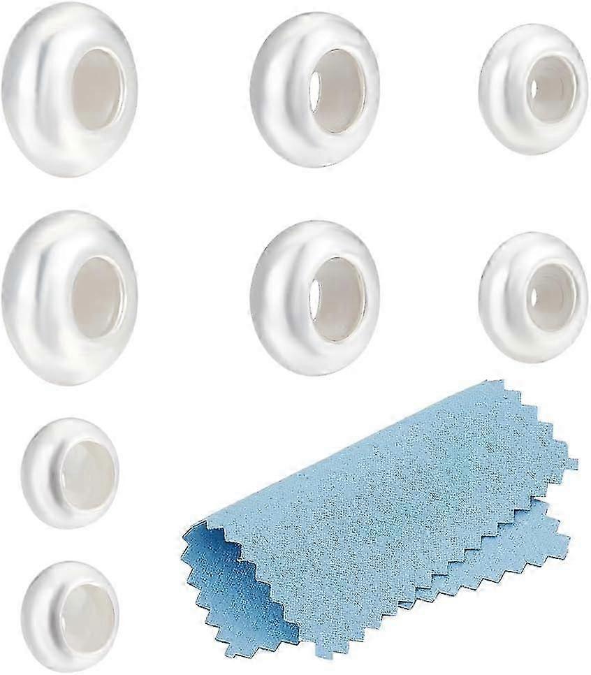 8Pcs 4 Sizes 925 Sterling Silver Stopper Beads Round Spacer Beads with Silver Polishing Cloth for DIY Bracelet Necklace Earrings J [jkw]