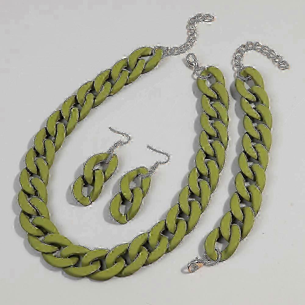 Bohemian Style Acrylic Necklace Set with Chunky Chain Choker Earrings and Bracelet for Women [jkw]