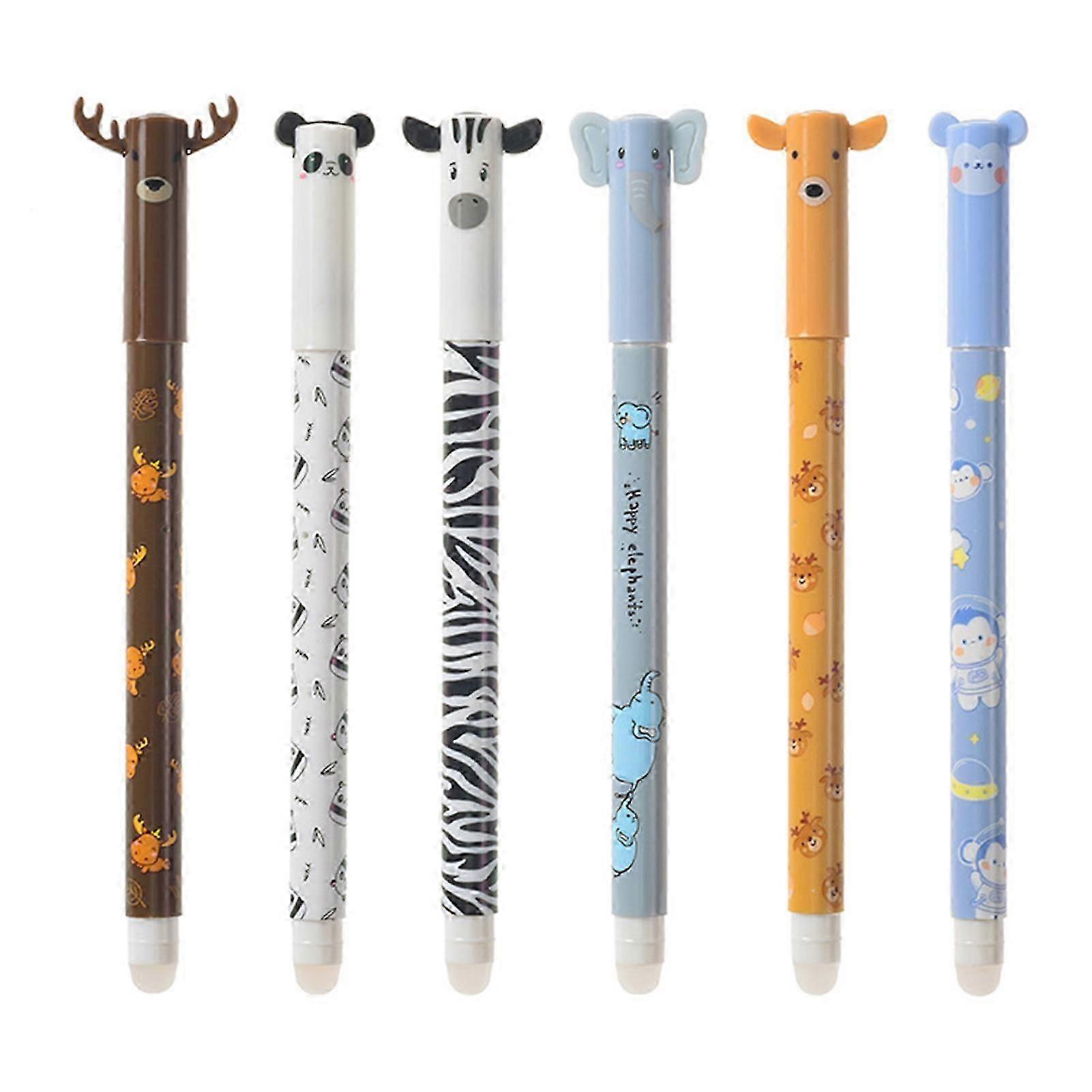 Set of 6 Erasable Gel Pens Cute Animal Shape Erasable Pens With Eraser School Supply [jkw]