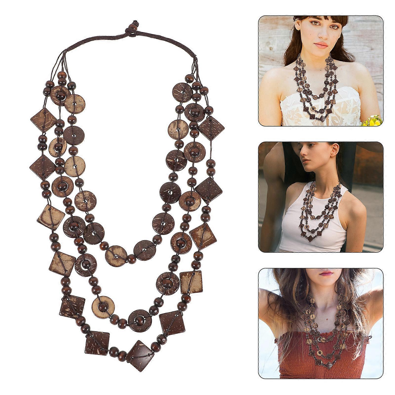 Eease Boho Wooden Bead Necklace with Shell Charms - Beach Fashion Jewelry for Women