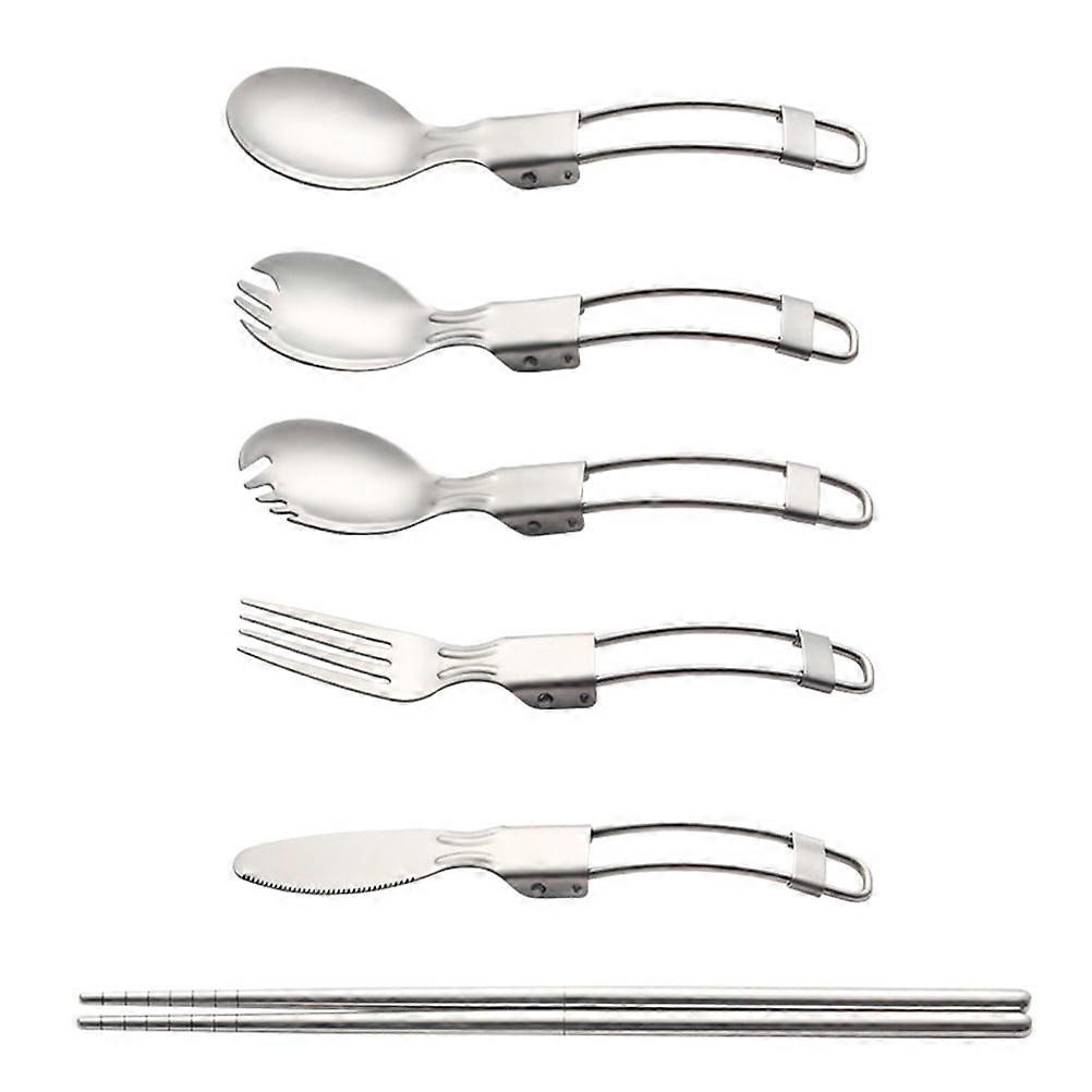Camping Utensils Folding Fork Spoon Portable Outdoor Dining Stainless Steel Cutlery Travel