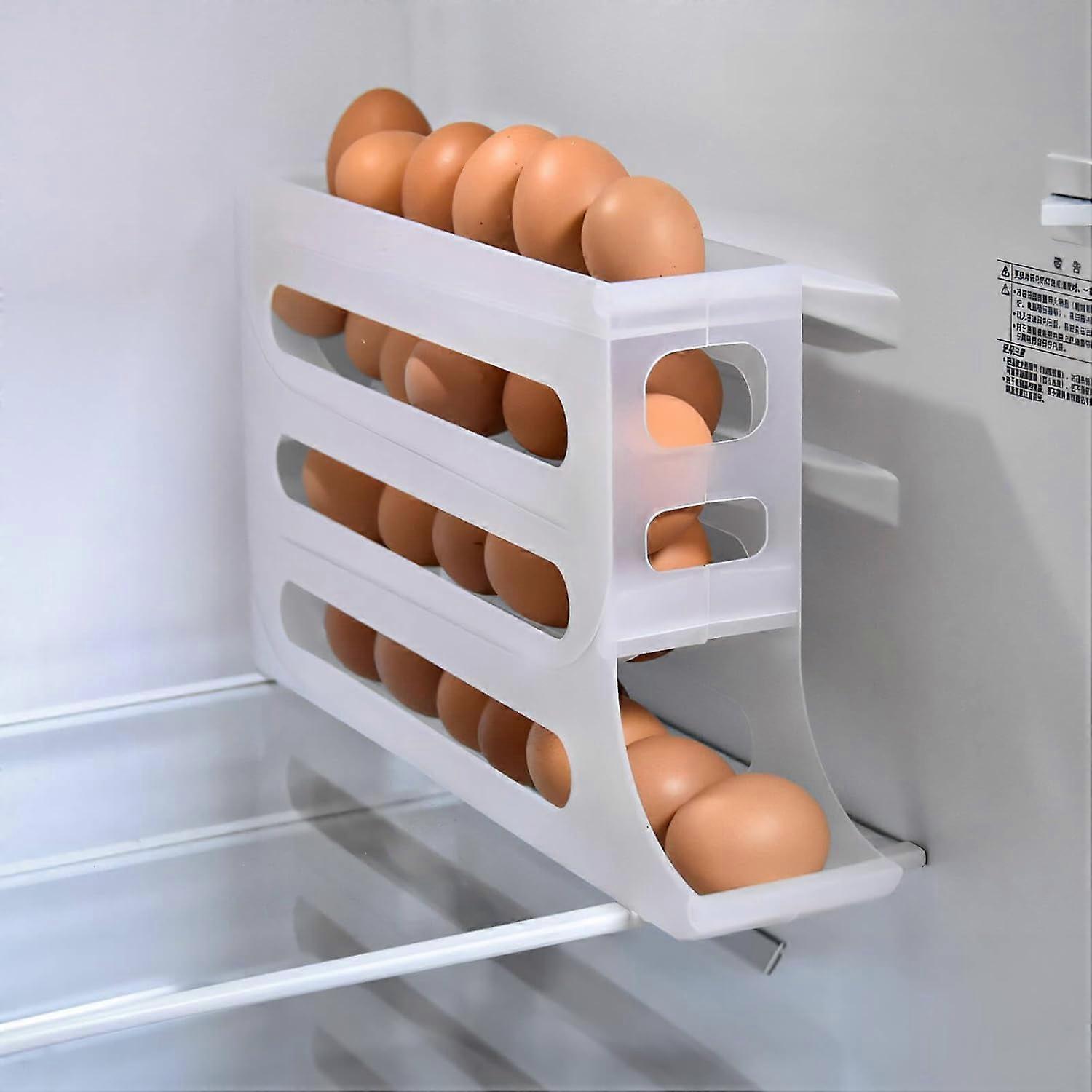 4-Tier Egg Holder for Fridge, Auto-Rolling Egg Organizer & Dispenser, Refrigerator Egg Storage Tray (White)