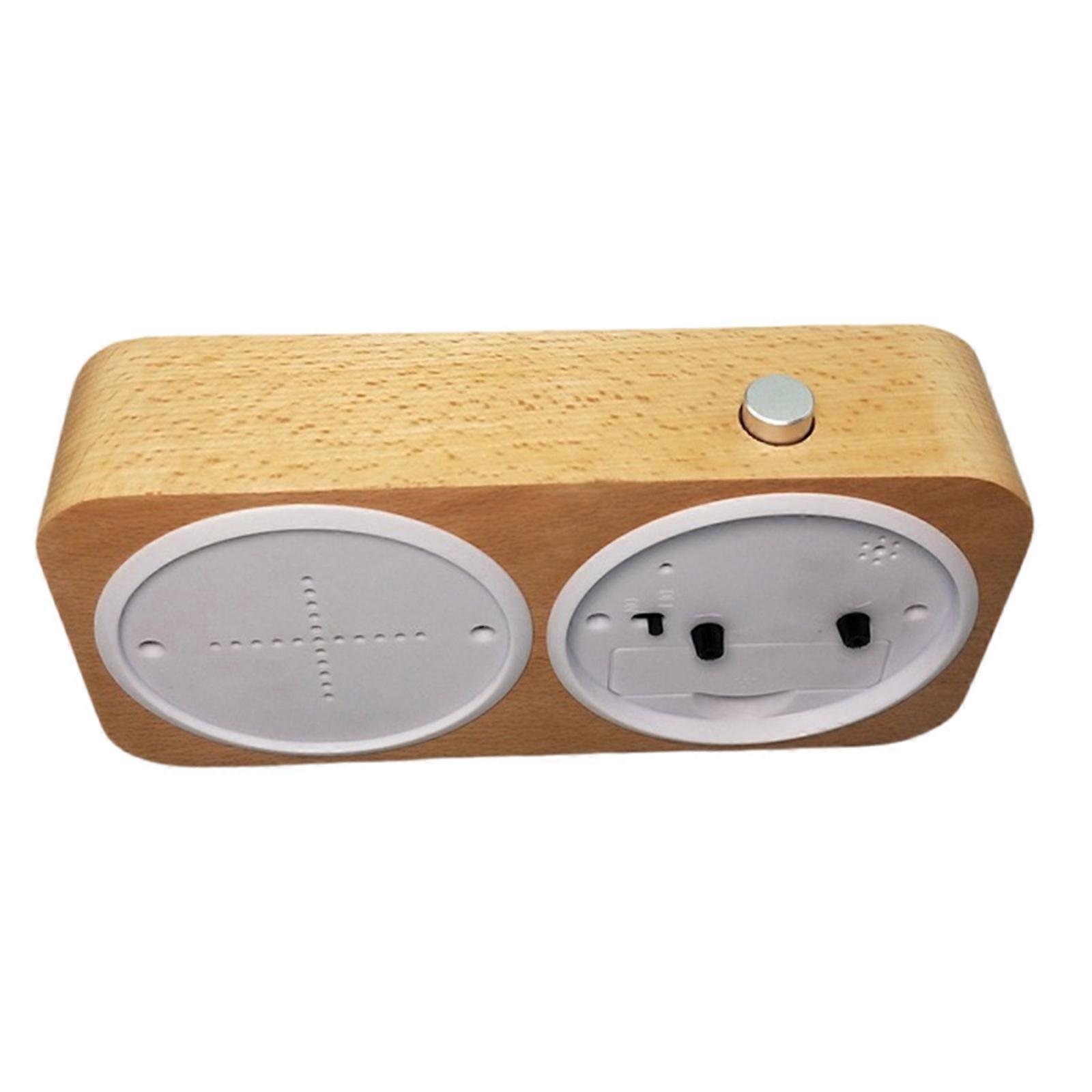 Vintage Wood Analog Desktop Clock with Thermometer Hygrometer Night Light Quiet Alarm Clock Battery Operated for Bedroom Multicolor