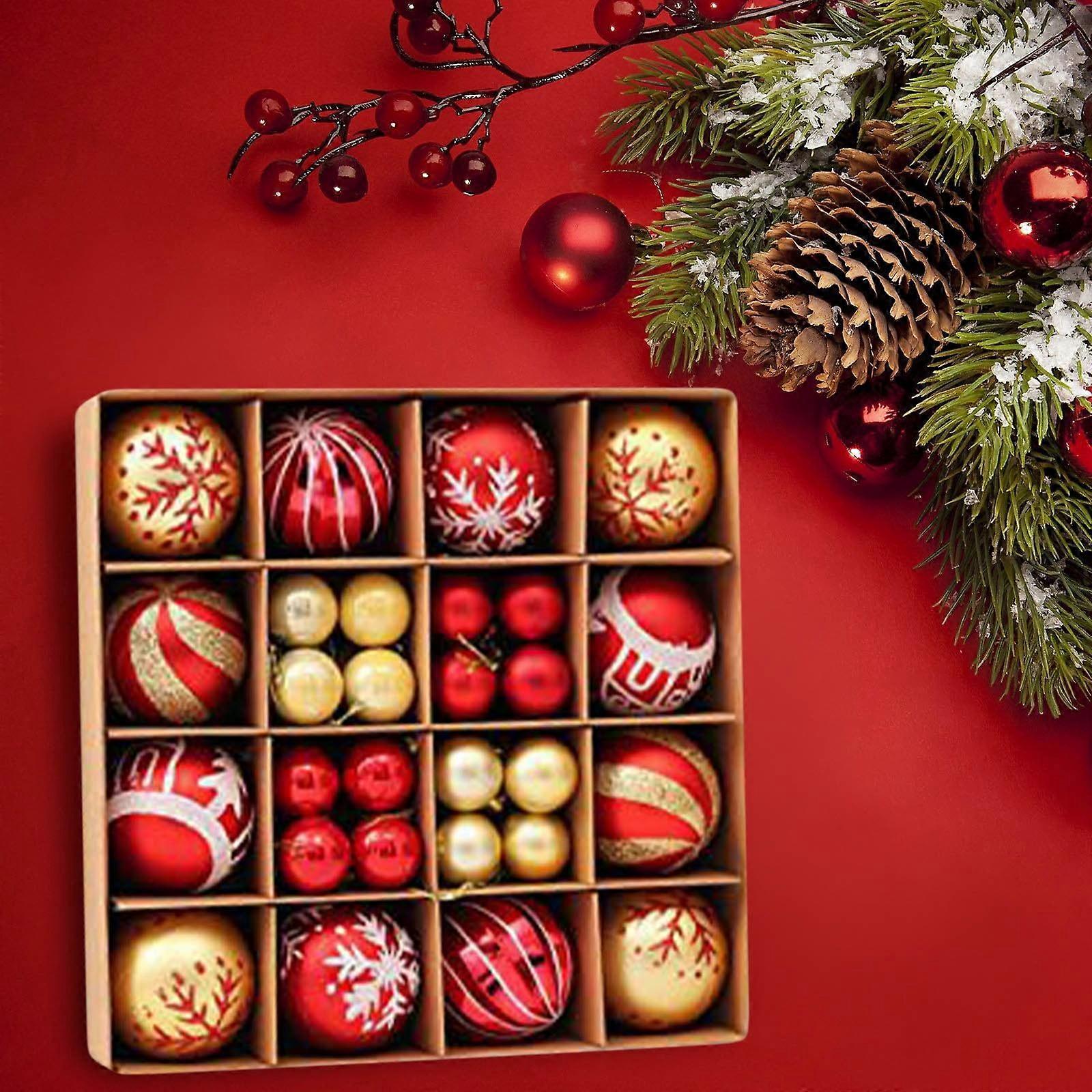 Christmas Gift Ozmmyan Christmas Decorative Balls Gift Box Set Painted Christmas Balls Party Christmas Tree Dropball Pendant (44PC) Clearance