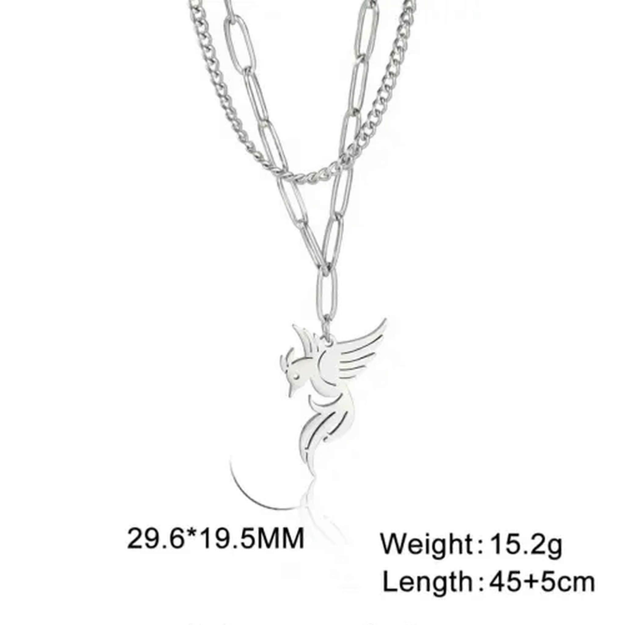 RSAMD Phoenix Pendant Necklace for Women Stainless Steel Double Layer Paperclip Choker-Steel