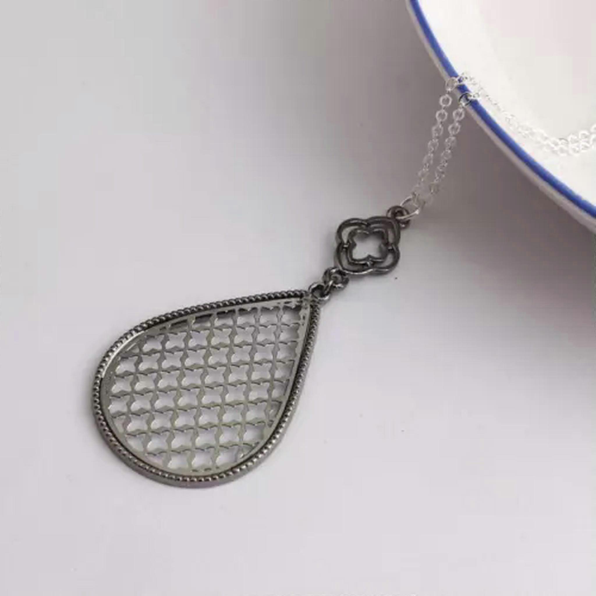RSAMD 34'' Cutout Filigree Floral Pendant Long Moroccan Necklace Statement Earrings-E4725-Black
