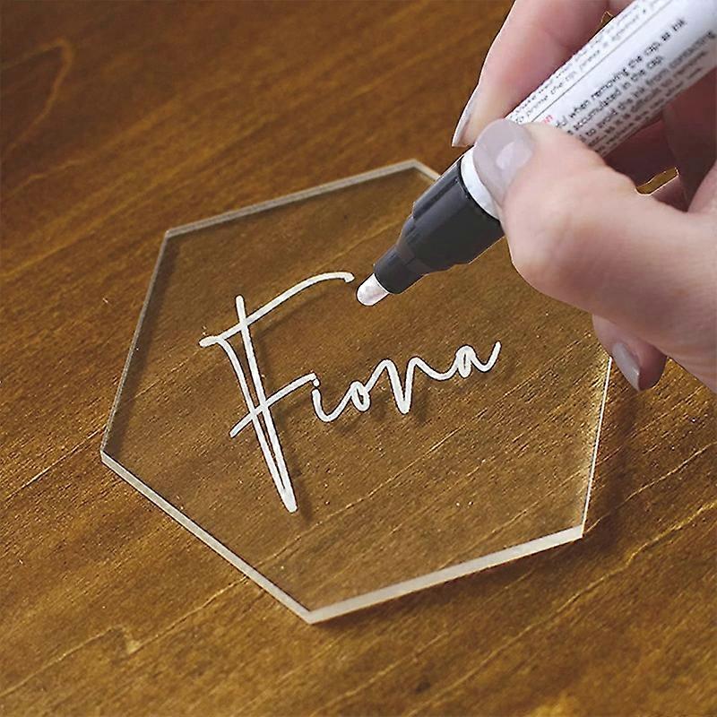 10 PCS Clear Hexagon Acrylic Seat Card Guest Business Card Logo Decoration DIY Board 1. Uses: Suitable for use as name tags, wedding stationery, greeting cards, table numbers, seat cards, thank you cards, mini food menu boards, etc. for weddings, parties or other important events 2. Usage: When using, please tear off the protective film and write with an easy-to-erase whiteboard marker. For example, the marks of marker that are not easy to erase can be erased with alcohol. 3. Material: colorless transparent acrylic 4. Size: 8 x 7cm 5. Weight: 10g