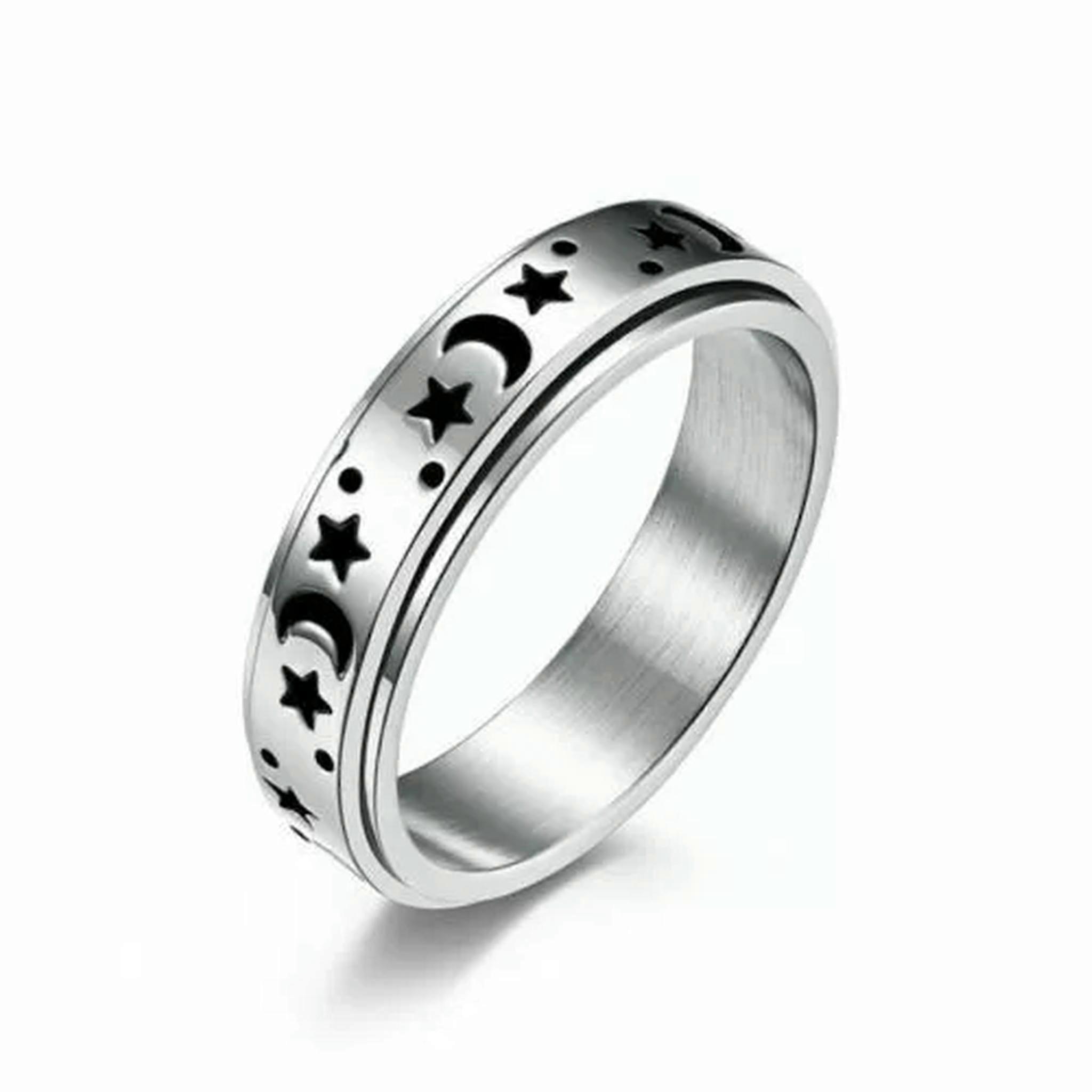 RSAMD Stainless Steel Moon and Star Anxiety Spinner Ring 6mm for Men Woman Fidget Ring-Silver-6