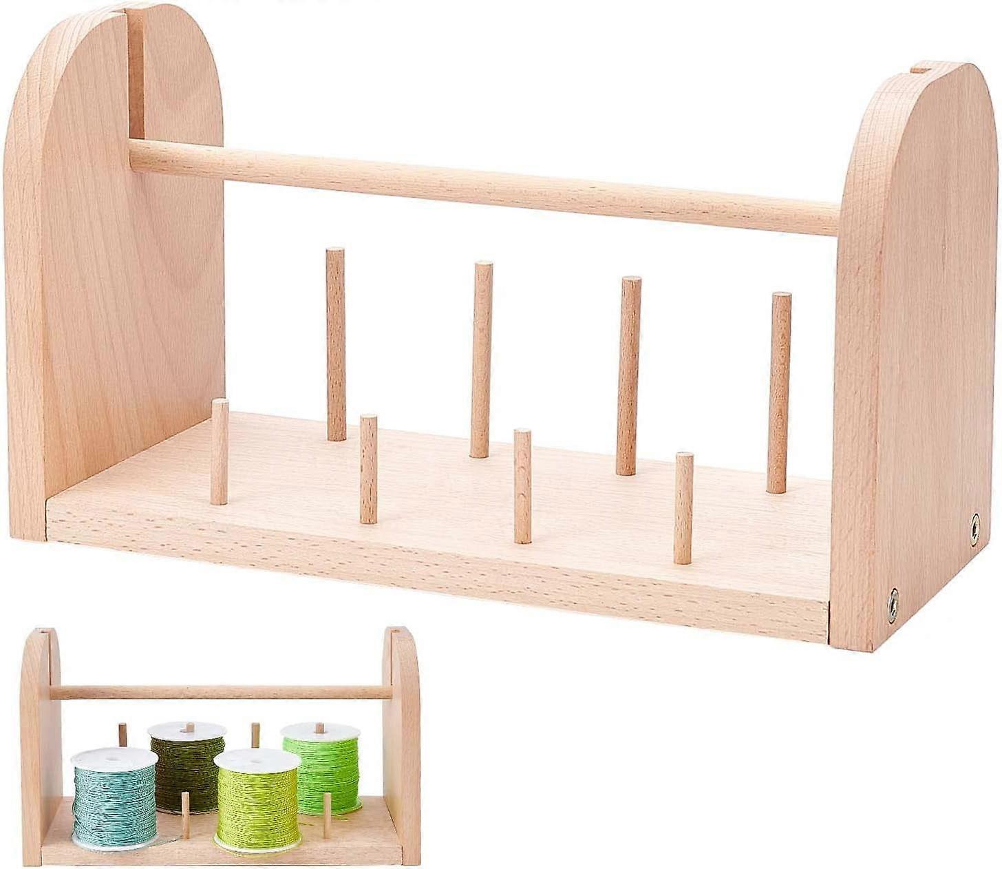 Wooden Spools Holder Set with Iron Screws Hexagon Wrench Wooden Thread Rack for Weaving Cord and Sewing 12x26.5x15cm/4.7x10.4x6Inch 【Quality Material】: The thread rack is made of premium natural wood with smooth finishing, which is strong and durable. 【Package Included】: Wooden Spools Holder Set contains: 1pcs chassis plate, 1pcs vertical plates, 9pcs sticks(3 sizes), 1pc iron hexagon wrench, 4pcs iron screw. 【Size Reference】: Finished product: about 265mm/10.43inch wide, 119mm/4.68inch long, 150mm/5.90inch high. Please refer to the pictures for more size details. 【Easy To Use】: The horizontal stick of the thread stand can be rotated smoothly. It makes your embroidery or sewing process hassle-free, and saves more time. 【Wide Usage】: This wood yarn holder is a practical knitting and crochet accessory for knitting beginers and lovers to help them improve their knitting efficiency.