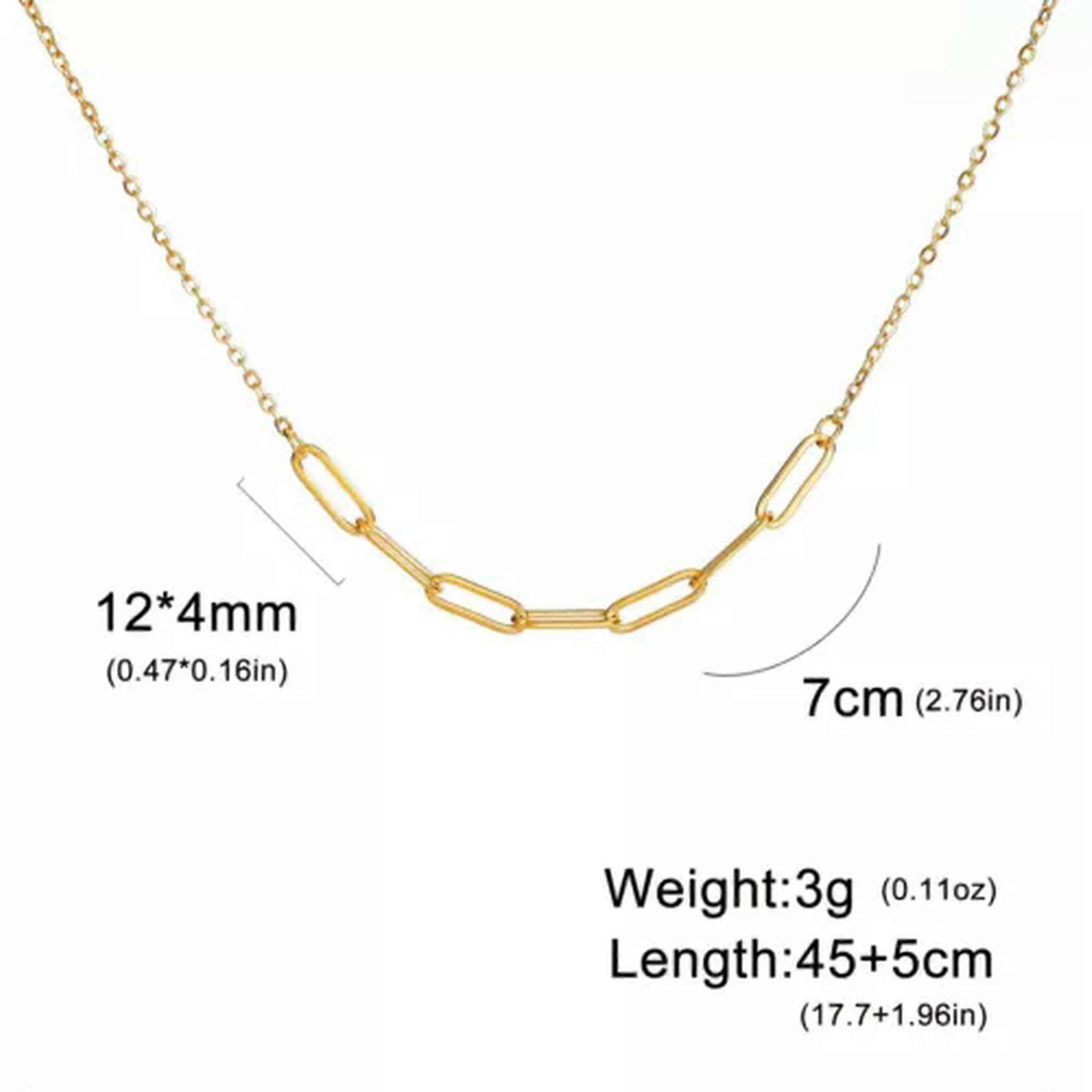 RSAMD Paper Clip Link Chain Necklace for Women Stainless Steel Trendy Jewelry Gift-45-50 cm-Gold-color