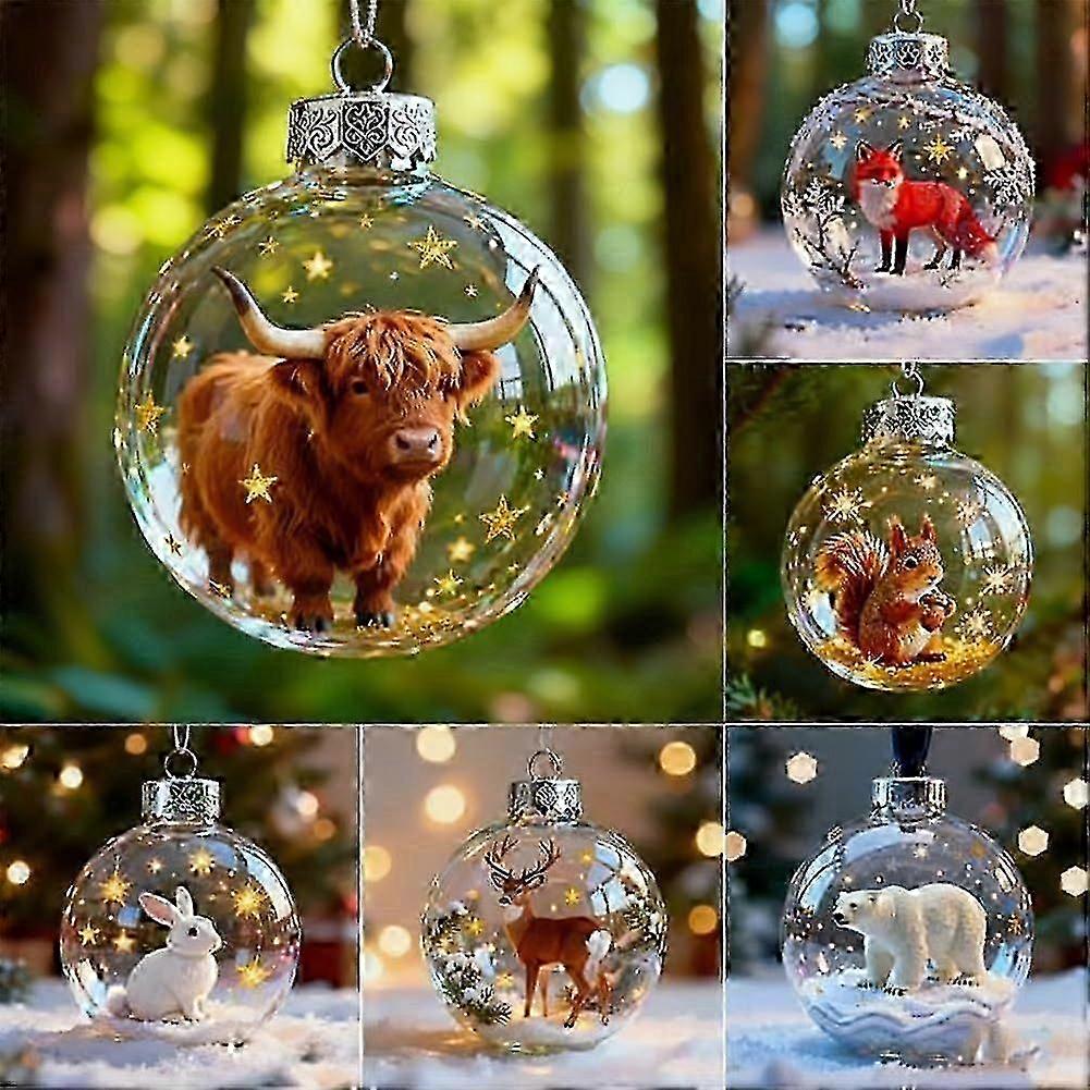 Wildlife Wonders Collection 3D Crystal Glass Ornament: Vivid Highland Cow Xmas Decoration, Clear Plastic Balls for Festive Holidays