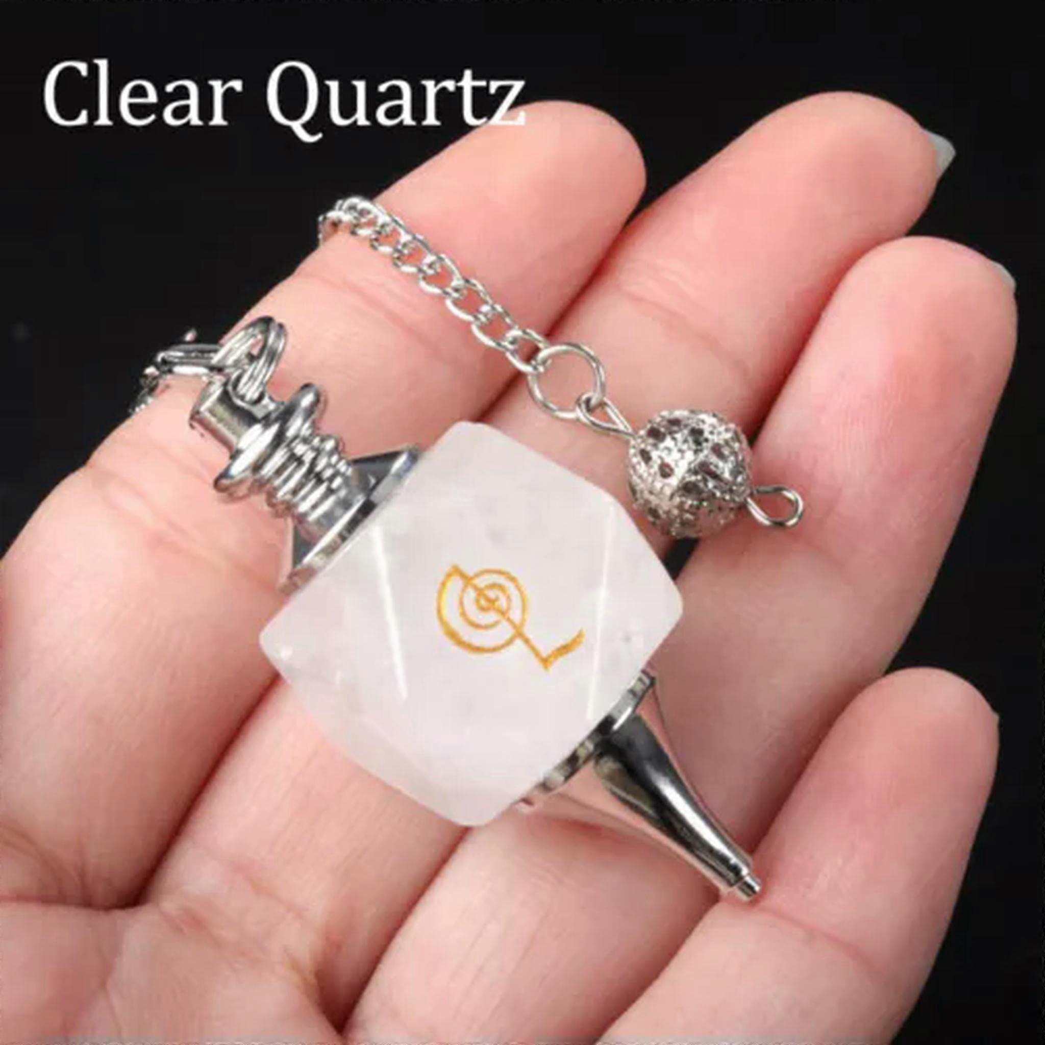 RSAMD 1pc Crystal Cho Ku Rei Pendulum Quartz Runes Chakra Gemstone Pendant Wicca Reiki-Clear Quartz-1 PC (Random Pick)