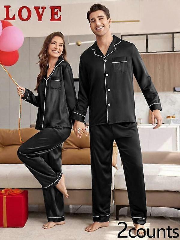 Unisex's Button Front Pajama Two-Piece Set, Casual Comfy Long Sleeve Lapel Neck Top & Pants PJ Set, Men's Sleepwear for All Seasons