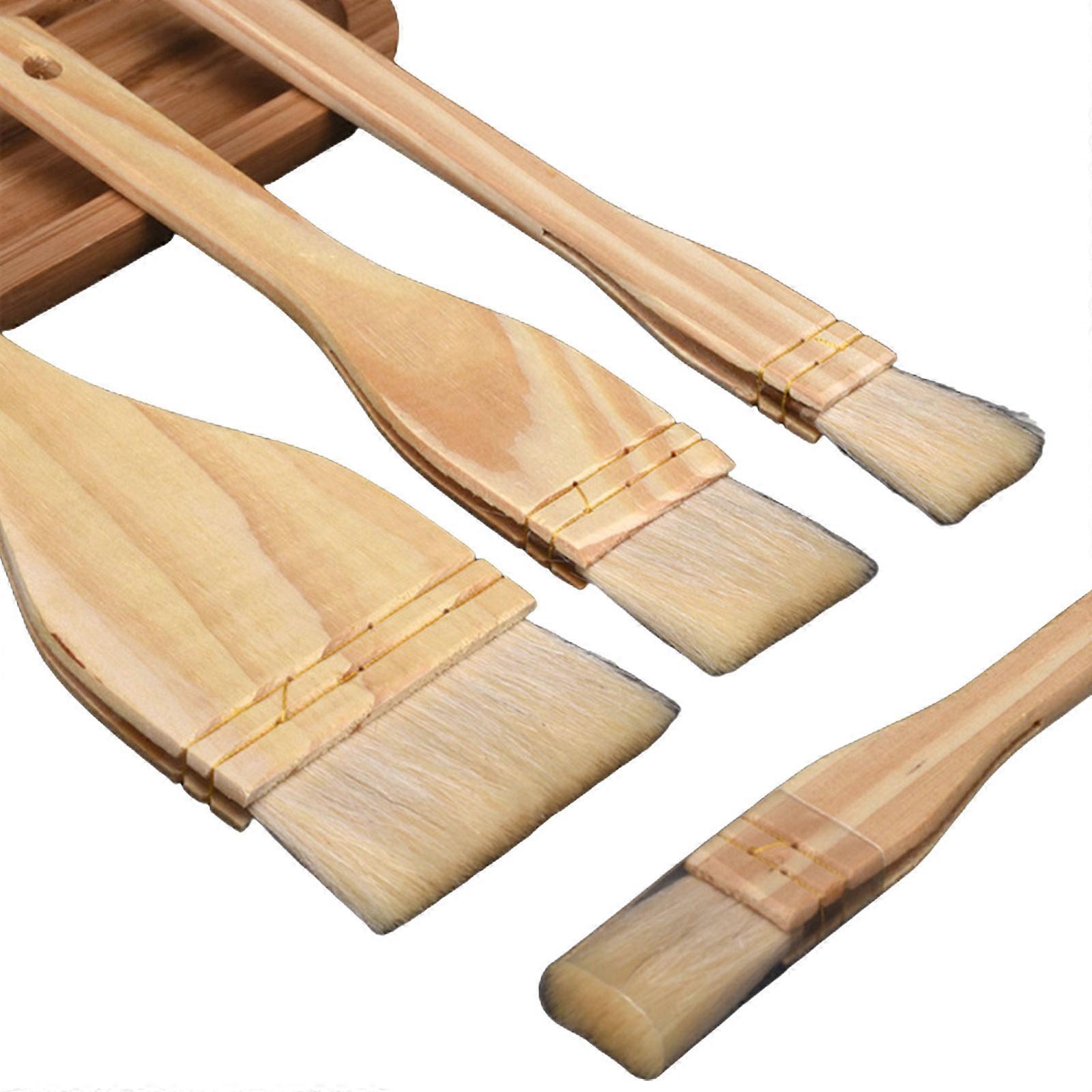 3Pcs Kitchen Basting Oil Brush Wood Handle Pastry Brushes Barbecue Oil Baking Brush for Spreading Butter Cooking Baking Multicolor