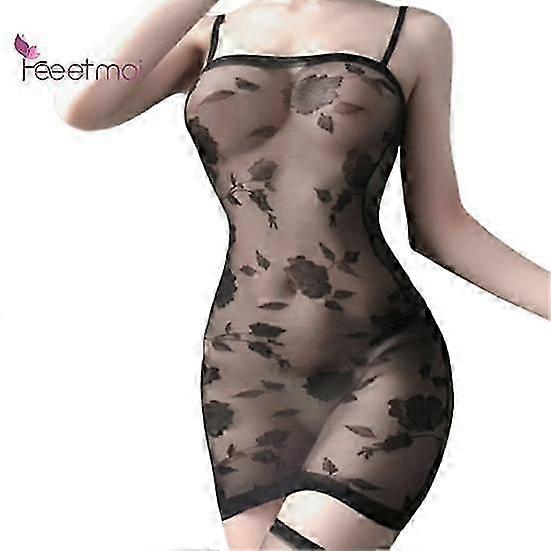 Erotic Dress Perspective Sexy Lace Dress Sleep Colthes Women Sexy Wear Black Lace Perspective Costumes Transparent Babydoll SetZZ46