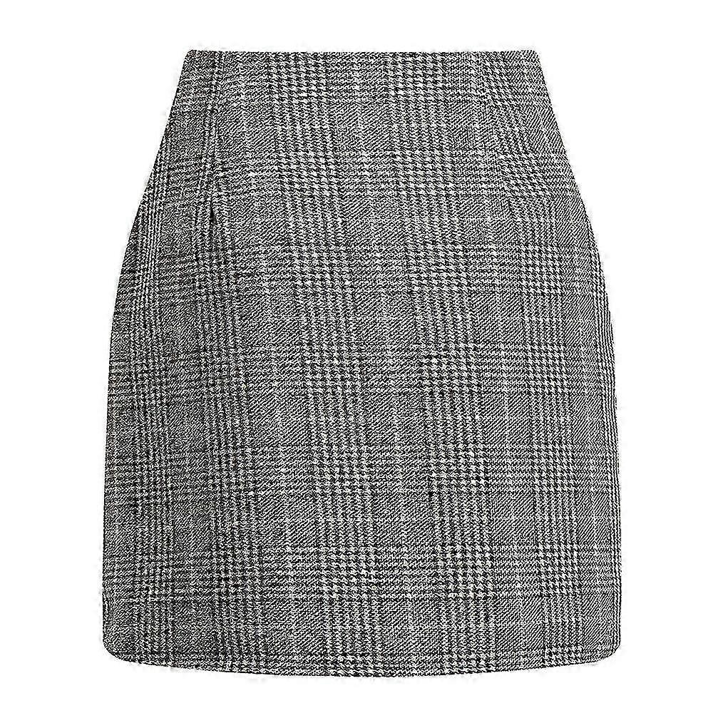 Womens High Waisted Vintage Plaid Bodycon Pencil Woolen Mini Skirts Autumn Winter A-Line Slim Fit Skinny Short SkirtZZ46
