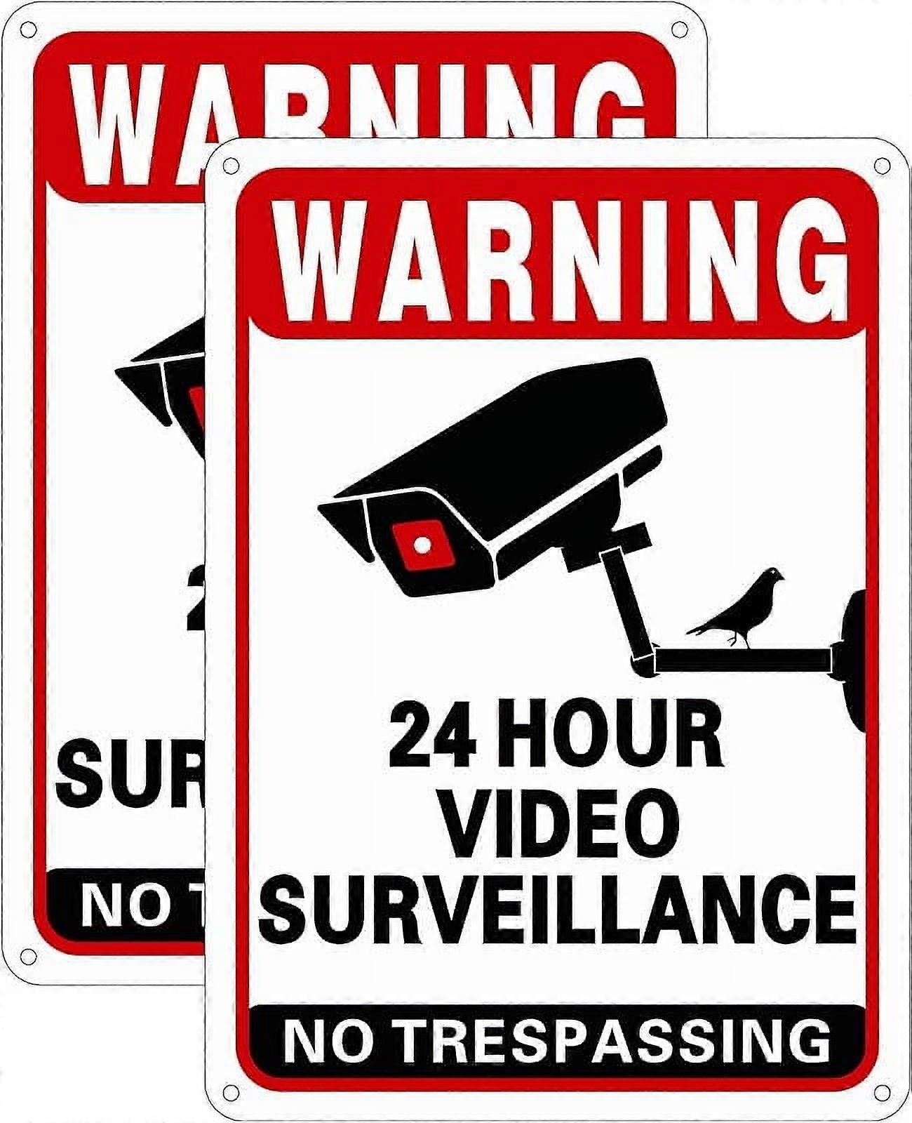 (2 Pack) 24 Hour Video Surveillance Sign, 9.7"x7" Reflective Aluminum Warning Sign, No Trespassing Private Property, Heavy Duty Outdoor Security Sign