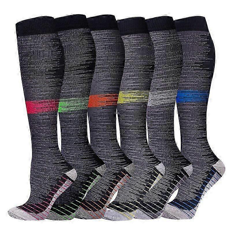 6-Pack Compression Socks for Sports & Yoga Graduated Support, Muscle Recovery, Unisex Calf High 01