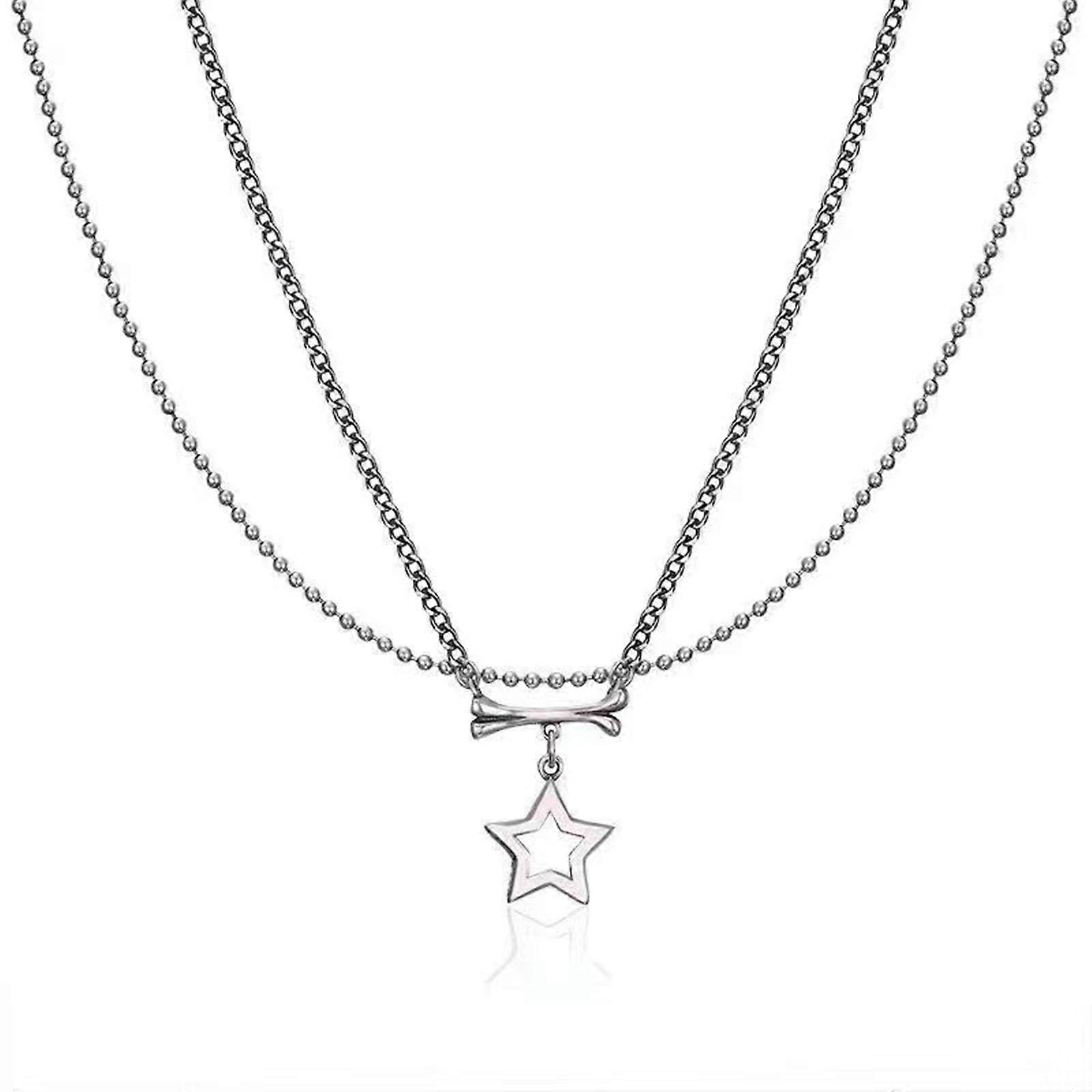 Fashion Small Star Pendant Necklace Bead Chain Charm Sweater Chain Y2k Choker Necklace Jewelry for Women Girl Teen Multicolor