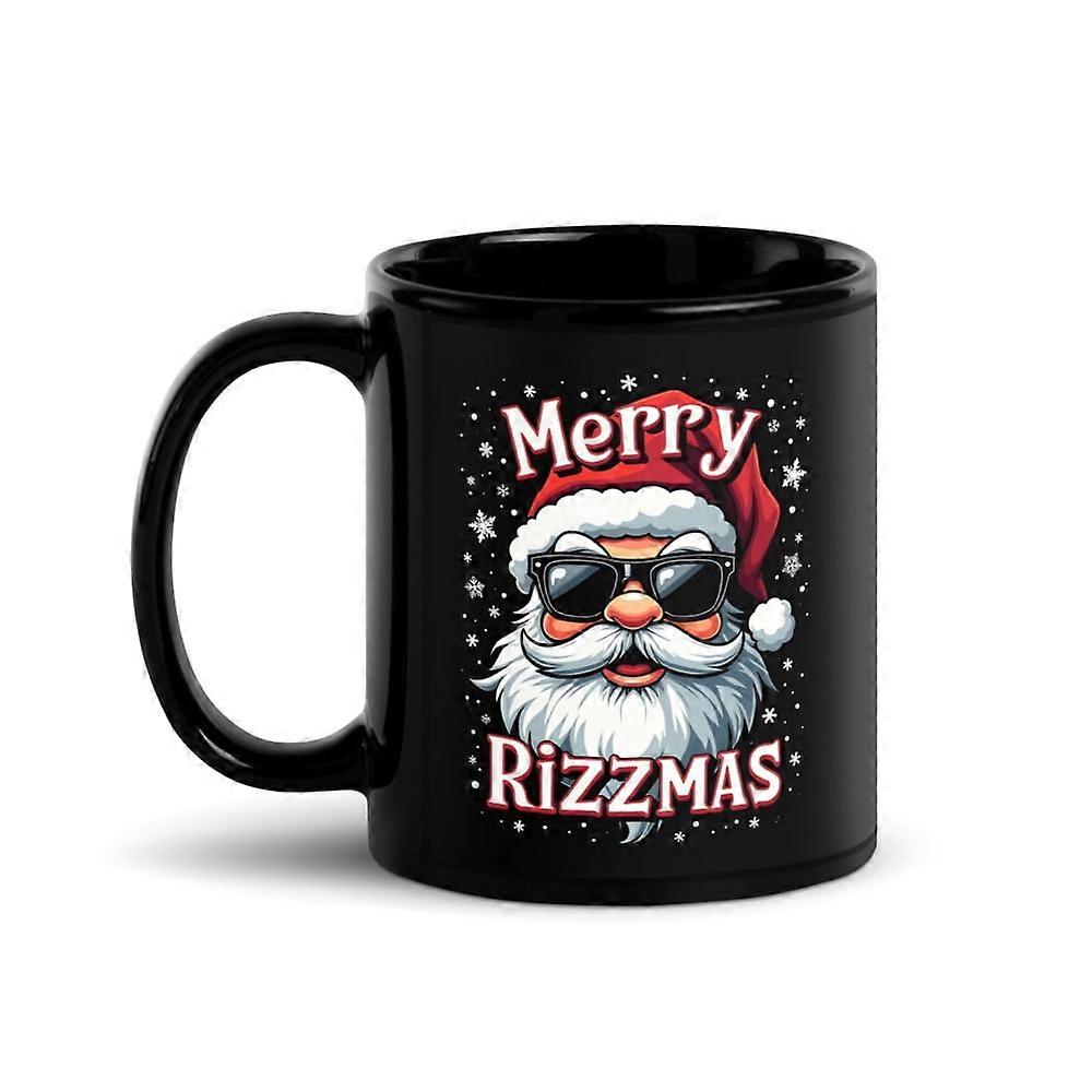 Christmas Rizz Cool Santa Sunglasses Xmas Black Glossy Mug, Merry Rizzmas (11 oz)