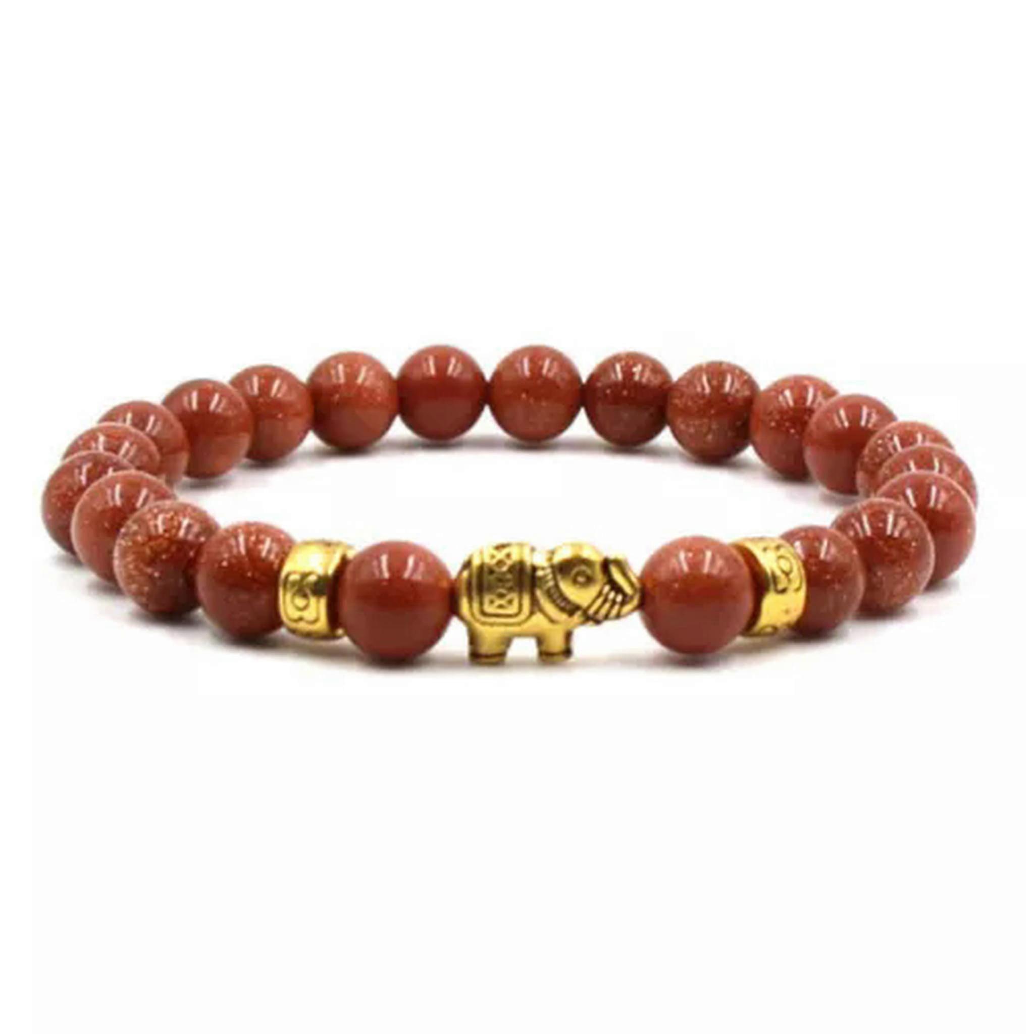 RSAMD 7' Charm Gold Plated Elephant Fashion Lovely Gifts Men Women 8mm Agate Bracelets-Gold Sandstone