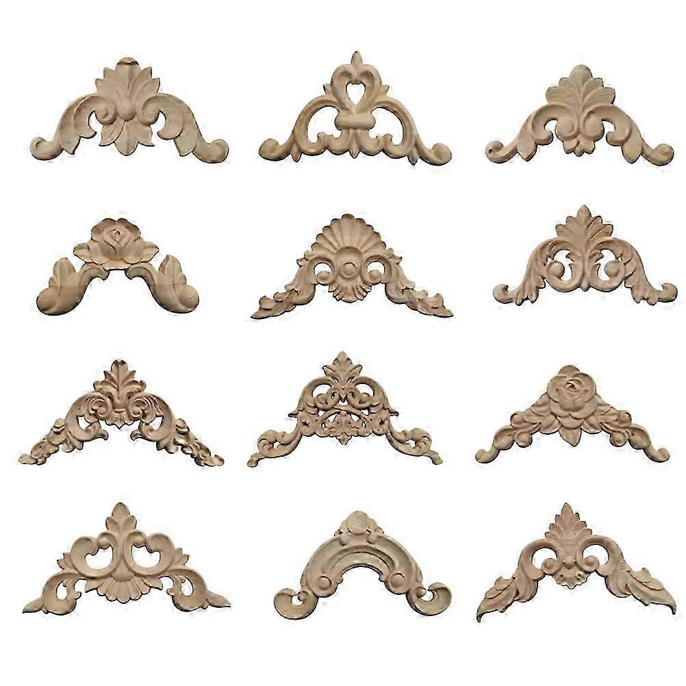12 PCS Carved Wood Furniture and Wall Decals, Flower Appliques