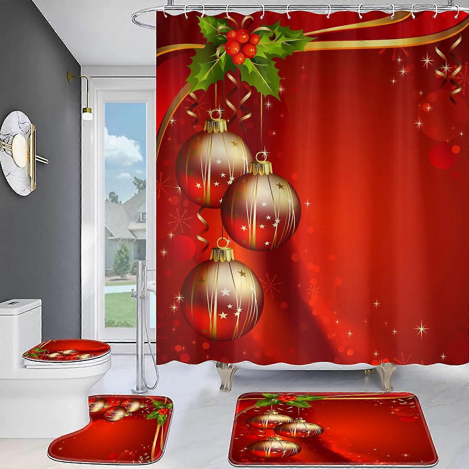 Christmas Bathroom Set for Kids - Waterproof Curtain & Floor Mat with Colorful Balls, Hooks Included. Compatible with standard bathtubs.