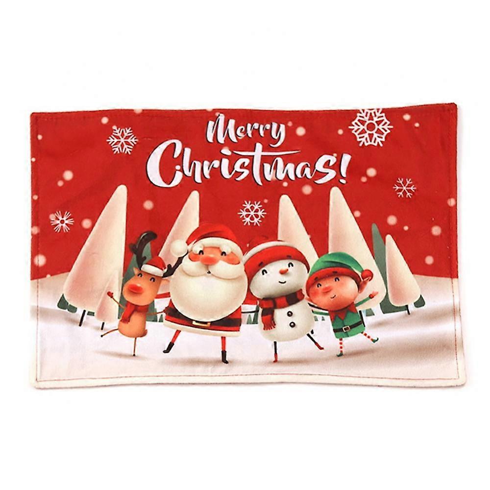 Merry Christmas Placemats Set of 2, with Reindeer Santa Snowman Printed, Non-Slip Place mats Washable Table Mats, 11 × 17 inch